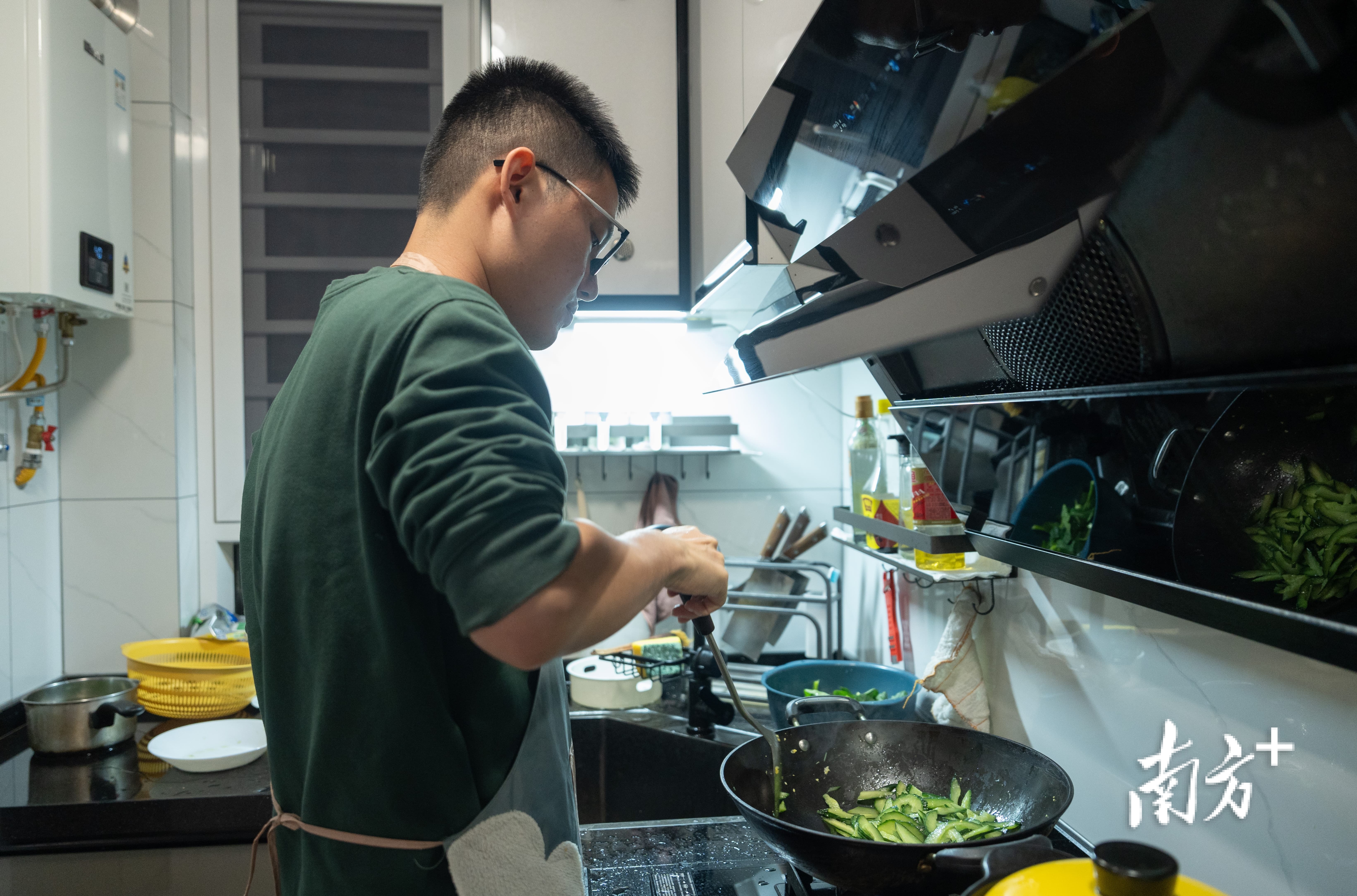 他买菜做饭,能独立做出一桌五六个人的菜。